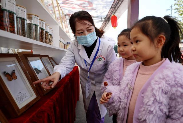 在中藥標本展示區,醫務人員通過觀看圖板、實物展示等方式,向大家介紹道地藥材追溯、藥材炮制等中醫藥文化。