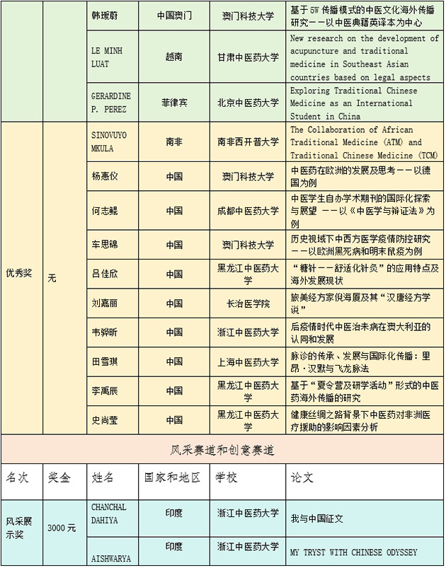附件:“同仁堂國藥杯”第五屆全球大學生中醫藥國際化征文活動獲獎名單