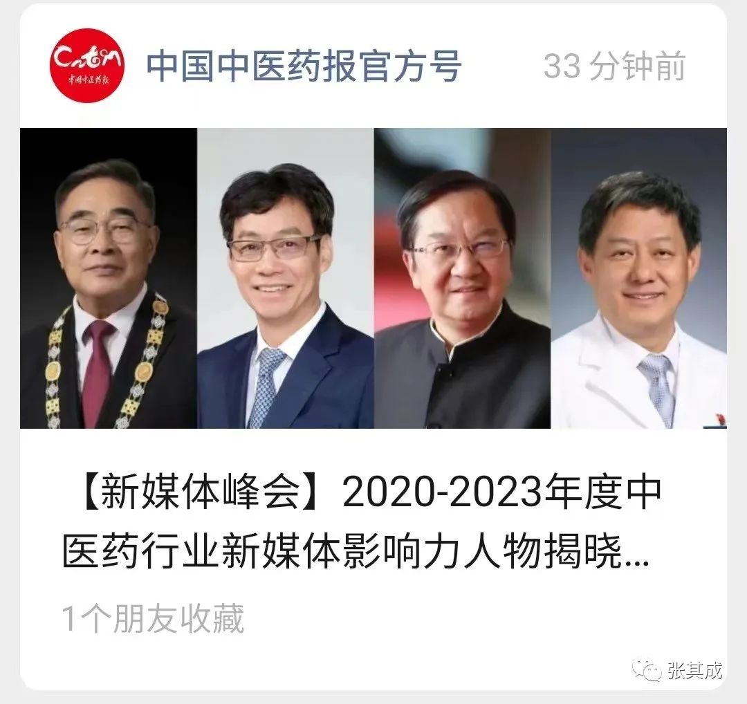 12月15日,第三屆中國中醫藥新媒體傳播峰會暨人工智能與中醫藥研討會在位于廣東珠海的橫琴粵澳深度合作區開幕。大會以“智聯·智傳·智享”為主題。開幕式上,2020-2023年度中醫藥行業新媒體影響力人物揭曉。經過前期對全網傳播量統計,并由中國互聯網發展基金會、中國人民大學、中國傳媒大學專家學者與《中國中醫藥報》社領導共同組成的評委會評審,北京中醫藥大學國學院教授、首任院長張其成獲評2020-2023年度中醫藥行業新媒體影響力人物,同時獲評的有國醫大師、中國工程院院士、天津中醫藥大學名譽校長張伯禮,廣州中醫藥大學副校長、廣東省中醫院院長張忠德以及首都醫科大學附屬北京中醫醫院院長劉清泉共四位專家學者,以表彰他們為中醫藥事業鼓與呼,在中醫藥科普、健康傳播、文化傳播作出的貢獻。