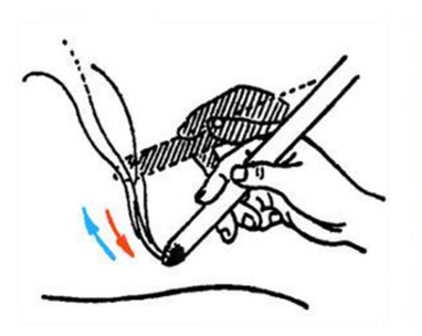 施灸時,可將艾條點燃的一端對準穴位局部,距皮膚2~3cm,以局部溫熱而無灼痛感為宜,每處灸10-15分鐘,至皮膚微微紅暈為度,注意及時調節艾條高度,防止燙傷。
