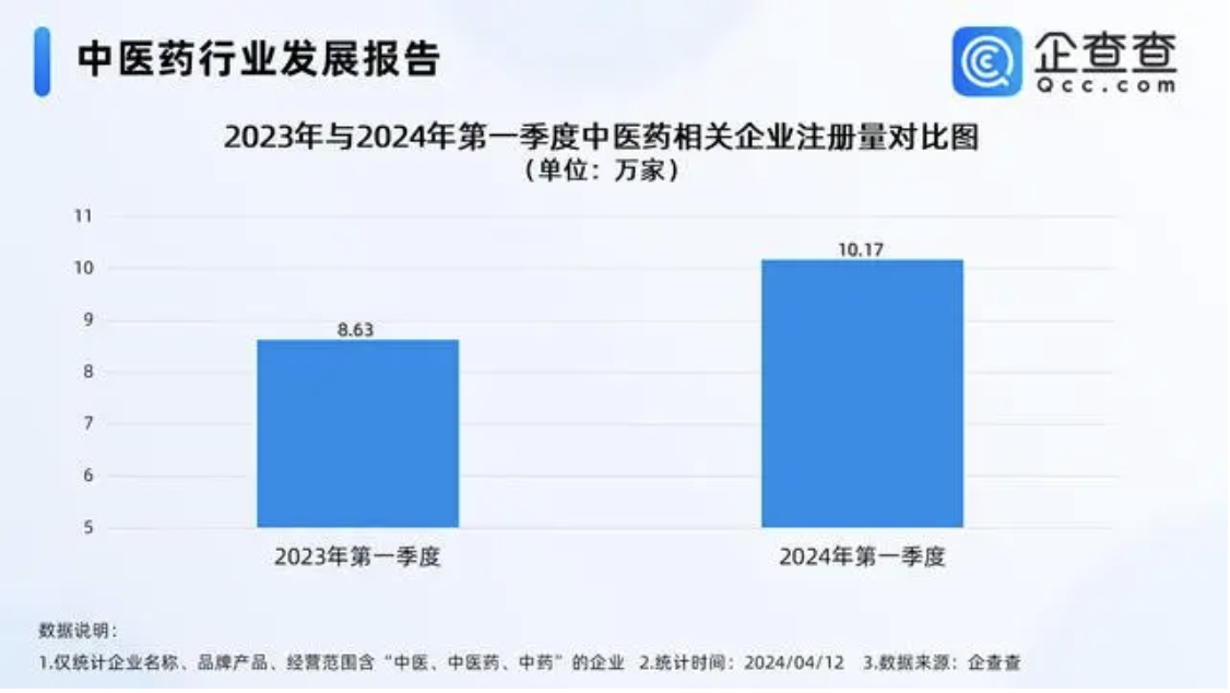 企查查數據顯示,國內現存中醫藥相關企業203.69萬家。近十年,其相關企業注冊量呈整體增長態勢,且增速差值較小。2023年其注冊量及增速迎來近五年雙峰值,首次突破40萬家,同比增長47.24%至43.6萬家。