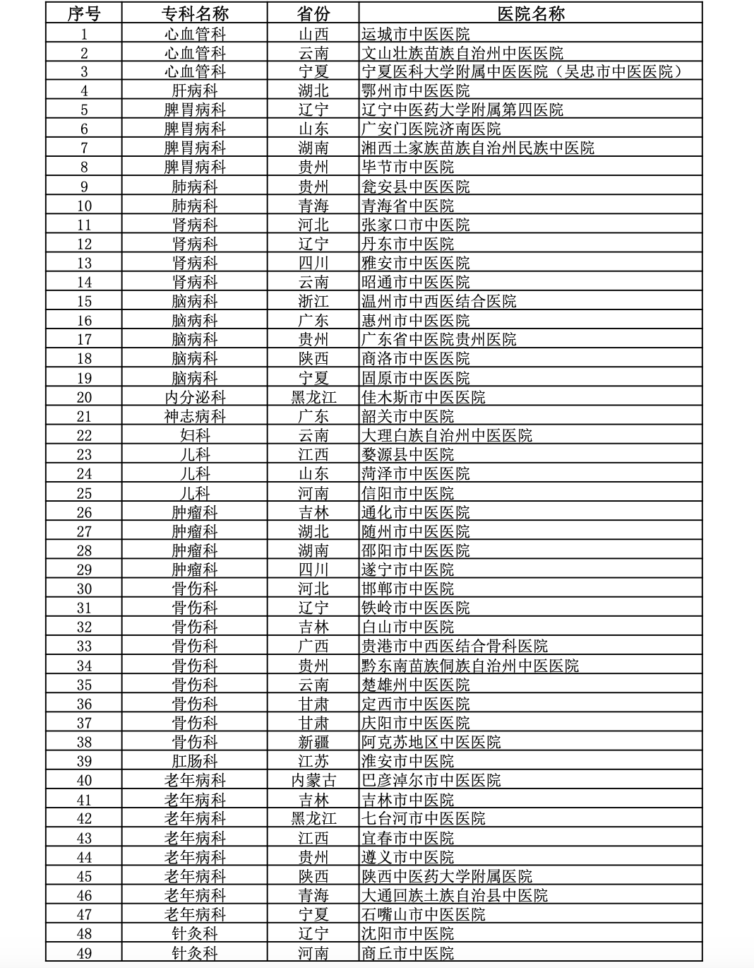 國家中醫優勢??平ㄔO單位和培育單位名單公布 確定1073個中醫優勢??平ㄔO單位和85個培育單位