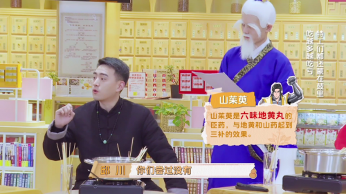 換取靈草之路充滿艱辛!在第四期的節目中,山茱萸藥材兌換靈草環節,一場中藥串串飯局,那更是“色香味”俱全,“知識點”滿滿!