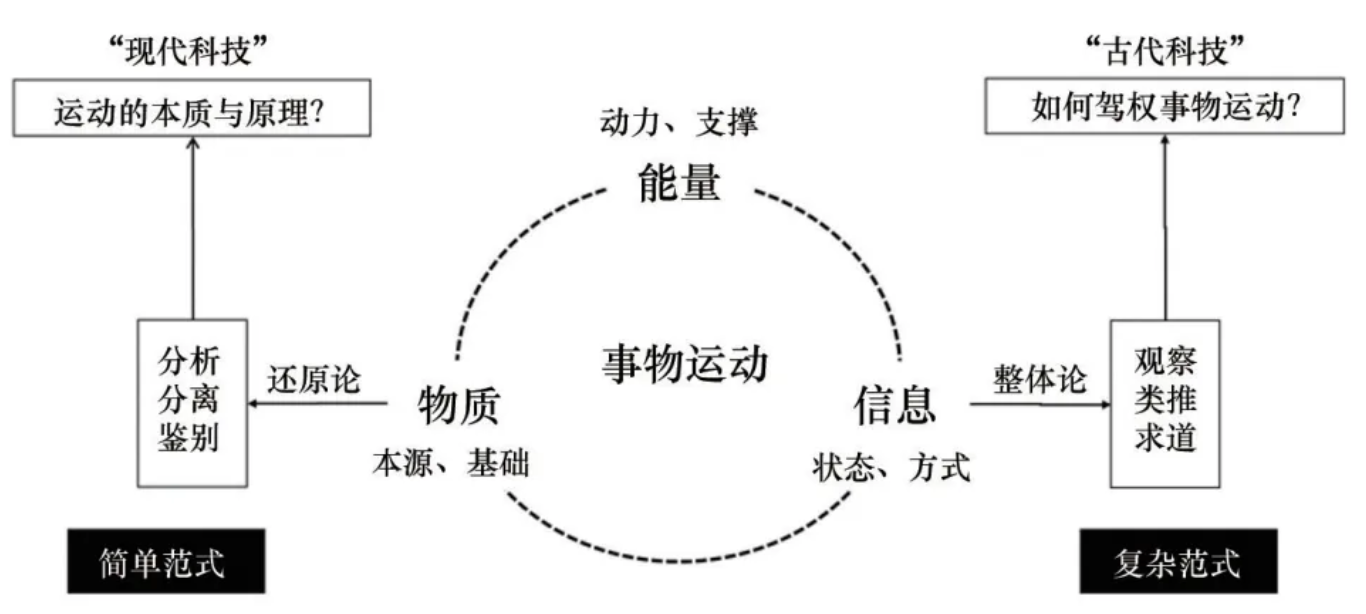 從物質觀出發,法國數學家皮埃爾-西蒙·拉普拉斯(Pierre-Simon Laplace,1749—1827年)提出:如果有一個超人能夠觀察到每一個原子的位置和動量,能夠解答一切方程式,那么宇宙的一切事件就都能夠被精確地描述?;谶@種觀念,物質科學在“還原論”的指導下,借助能夠將物質分離、分析與鑒別的技術,采用“分而治之”的方法論,將研究主體、研究環境對研究對象的影響降到最低,從而實現其從發現和分析物質結構及其功能這一本源出發,最終掌握事物運動規律的目標,以便回答“為什么”的問題,形成了物質科學的價值觀、特點及其知識體系。物質科學技術的進步催生了第一、第二以及第三次工業革命的發生,也為第四次產業革命奠定了堅實的基礎。