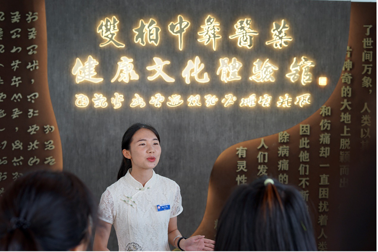 講解員帶領實踐團成員參觀中彝醫藥健康文化體驗館