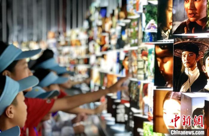 青島電影博物館劇照互動裝置吸引學生觀看