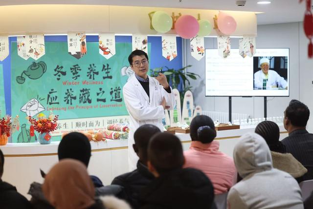 活動不僅包括中醫體質辨識、中醫望聞問切診療、中醫特色康復診療,還設置了健康養生講座、自制中草藥茶飲等環節。在體質辨識診區域,國際友人體驗針灸、推拿、按摩、耳豆穴位貼等中醫適宜技術治療。