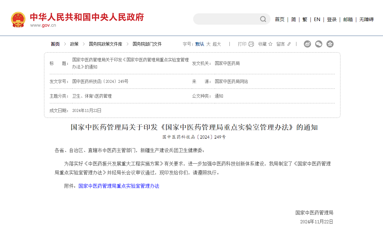 • 《國家中醫藥管理局重點實驗室管理辦法》全文