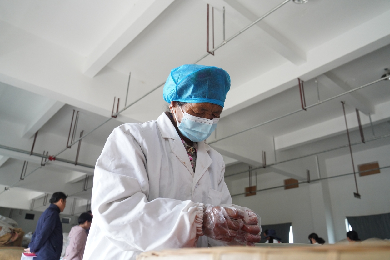 ▲在曲松鎮瓊嘎村藏藥材種植加工專業合作社,當地村民家門口就業,正在篩選藏藥材。中國網記者胡俊攝