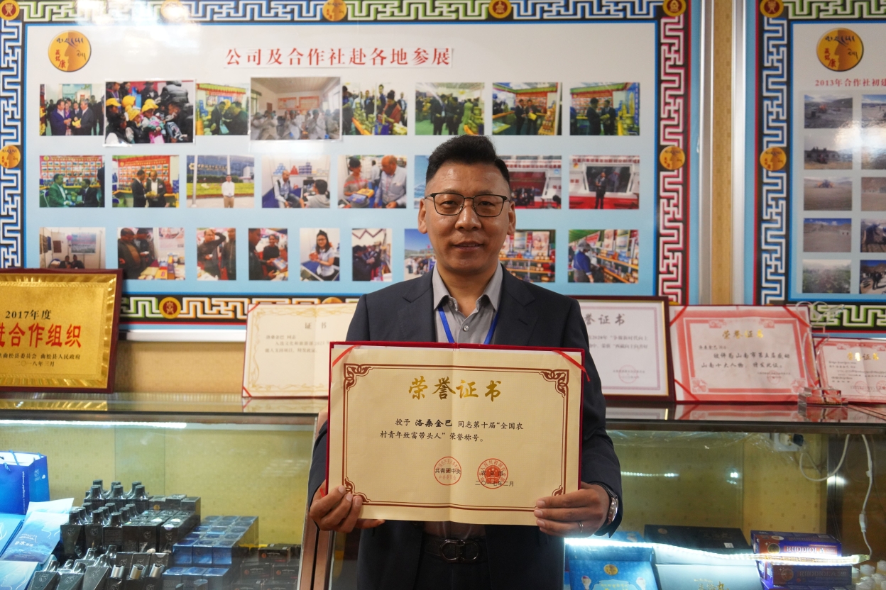▲洛桑金巴手捧“全國農村青年致富帶頭人”榮譽稱號證書。中國網記者胡俊攝