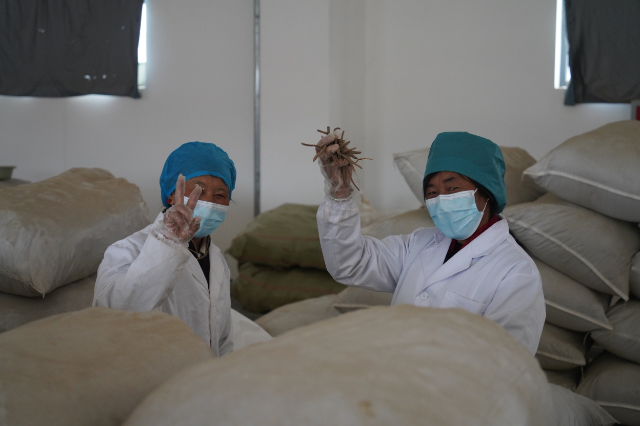 ▲在曲松鎮瓊嘎村藏藥材種植加工專業合作社,當地村民向記者展示藏藥材。中國網記者胡俊攝
