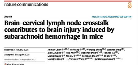 此項研究以蛛網膜下腔出血模型為研究“頭部內傷”的切入點,深入探究腦—頸部淋巴結交互的分子機制在SAH腦損傷中的關鍵作用?!斑@不僅是對石氏傷科理論的現代驗證,更從分子層面詮釋了中醫‘瘀血不除則新血難安’的科學內涵,豐富和發展了中醫‘氣血理論’的生物學基礎?!蓖鯎碥娊淌诒硎?,團隊將繼續以中醫優勢學科為依托,推動更多中醫經典理論走向現代化、國際化研究。