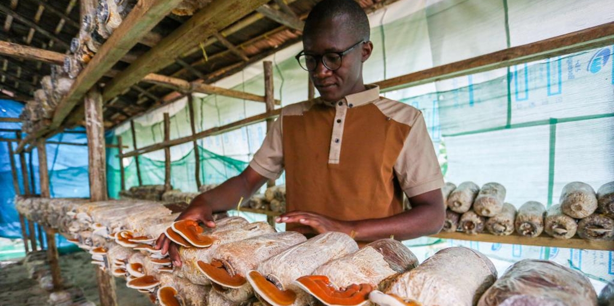 坦桑尼亞小伙菌菇棚里的中國“幸福草”